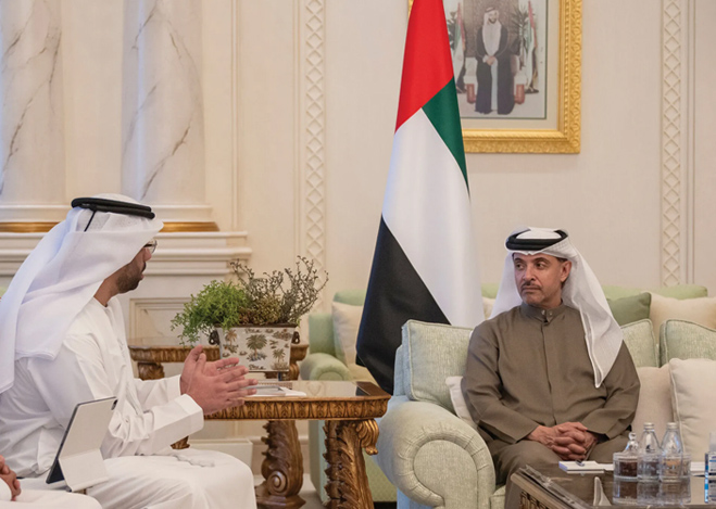 His Highness Sheikh Hazza bin Zayed Al Nahyan, Ruler’s Representative in Al Ain Region, has reviewed the region’s key strategic energy and water projects during a meeting today with a delegation from the Department of Energy – Abu Dhabi (DoE), led by His Excellency Dr Abdulla Humaid Al Jarwan, DoE Chairman.