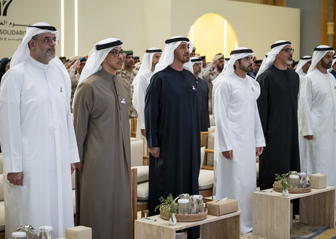 President His Highness Sheikh Mohamed bin Zayed Al Nahyan attended a session today commemorating the fourth anniversary of the Day of Solidarity. The occasion highlighted the strength of unity and cohesion across the UAE community, among both citizens and residents.