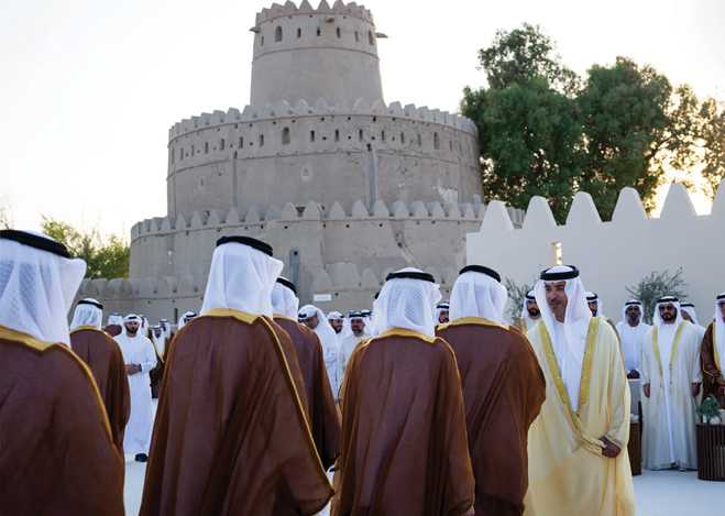 Under the patronage of His Highness Sheikh Mohamed bin Zayed Al Nahyan, President of the UAE, His Highness Sheikh Hazza bin Zayed Al Nahyan, Ruler’s Representative in Al Ain Region, has attended an annual group wedding reception to celebrate the marriages of 181 grooms from Al Ain Region at Al Jahili Fort.