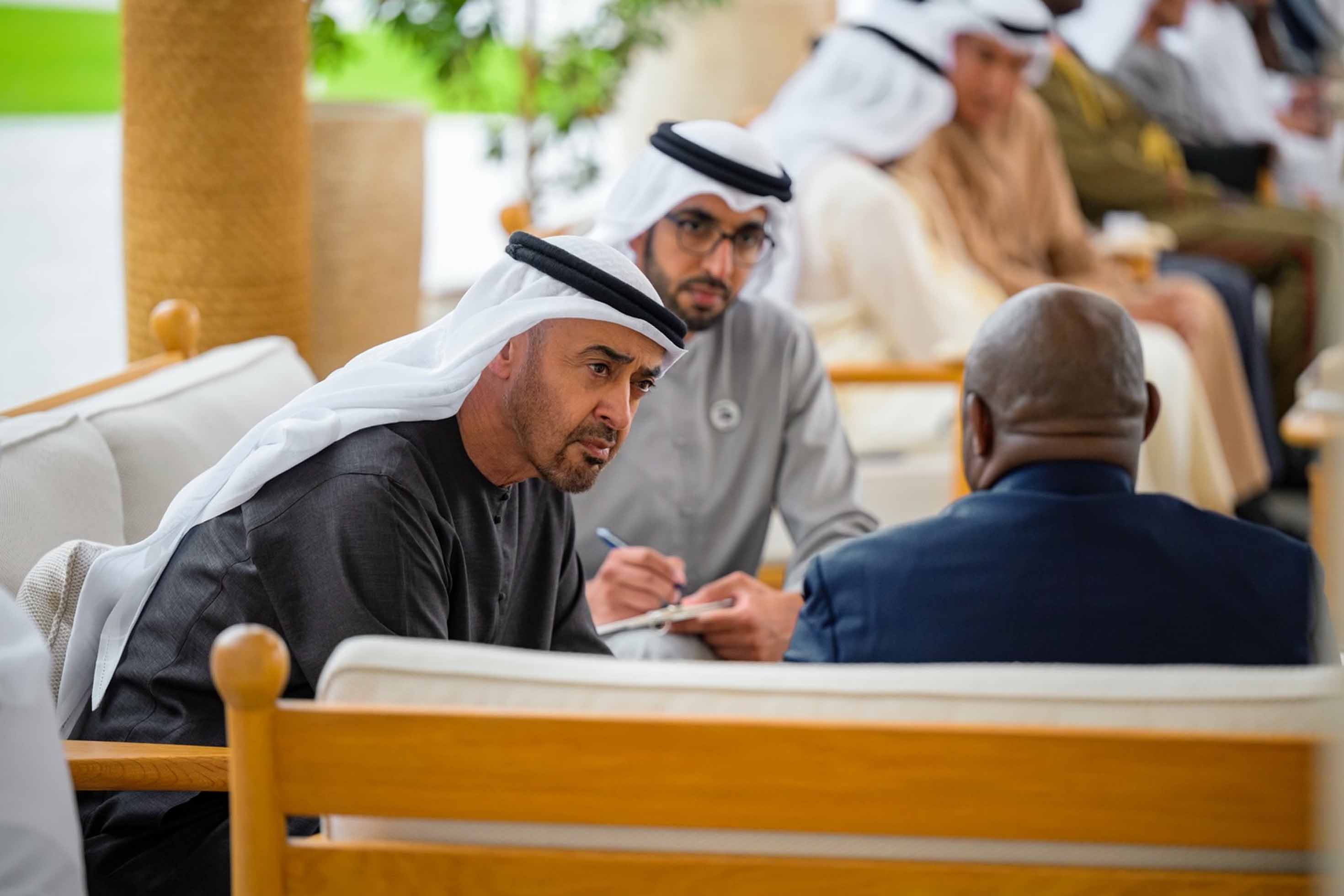 The meeting was attended by H.H. Sheikh Khaled bin Mohamed bin Zayed Al Nahyan, Crown Prince of Abu Dhabi; H.H. Sheikh Hamdan bin Zayed Al Nahyan, Ruler’s Representative in Al Dhafra Region; H.H. Sheikh Hazza bin Zayed Al Nahyan, Ruler’s Representative in Al Ain Region; H.H. Sheikh Hamdan bin Mohamed bin Zayed Al Nahyan, Deputy Chairman of the Presidential Court for Special Affairs; along with a number of sheikhs, ministers and senior officials.