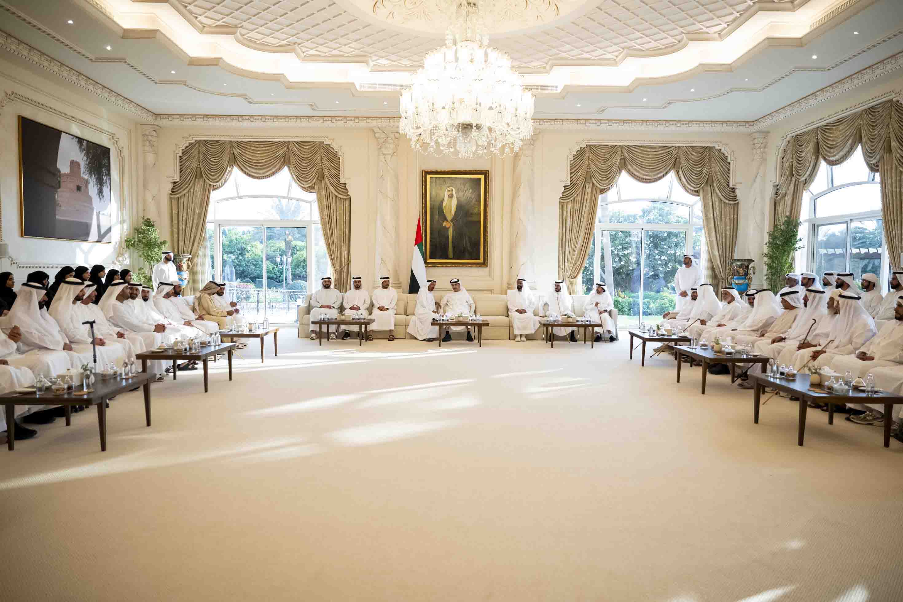 The gathering was attended by His Excellency Sheikh Sultan bin Tahnoon bin Mohammed Al Nahyan, Chairman of the Board of Directors of the Frontline Heroes Office; Sheikh Mohammed bin Hamdan bin Zayed Al Nahyan; Sheikh Zayed bin Hazza bin Zayed Al Nahyan; Sheikh Abdullah bin Mohammed bin Khalid Al Nahyan; and several sheikhs, officials and citizens from Al Ain Region.