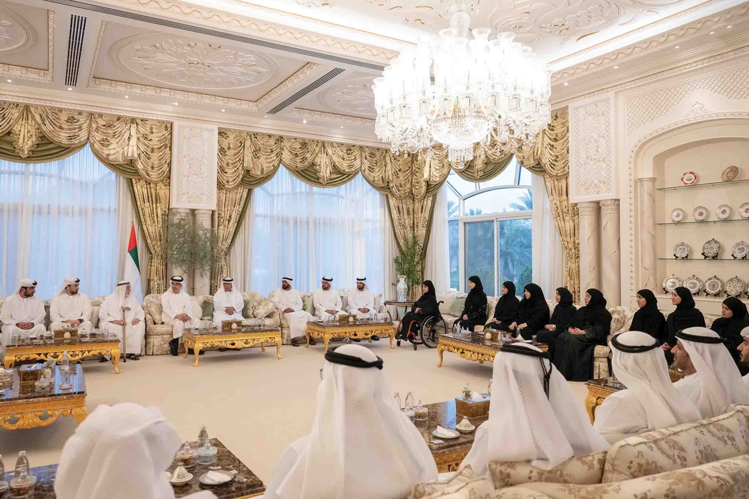 During the meeting held at Al Maqam Palace in Al Ain Region, His Highness engaged in cordial conversations with the attendees and congratulated the students, their parents and school principals on their achievements and academic excellence, wishing them continuous success and progress in their future careers and encouraging them to contribute to the UAE’s comprehensive journey of development.