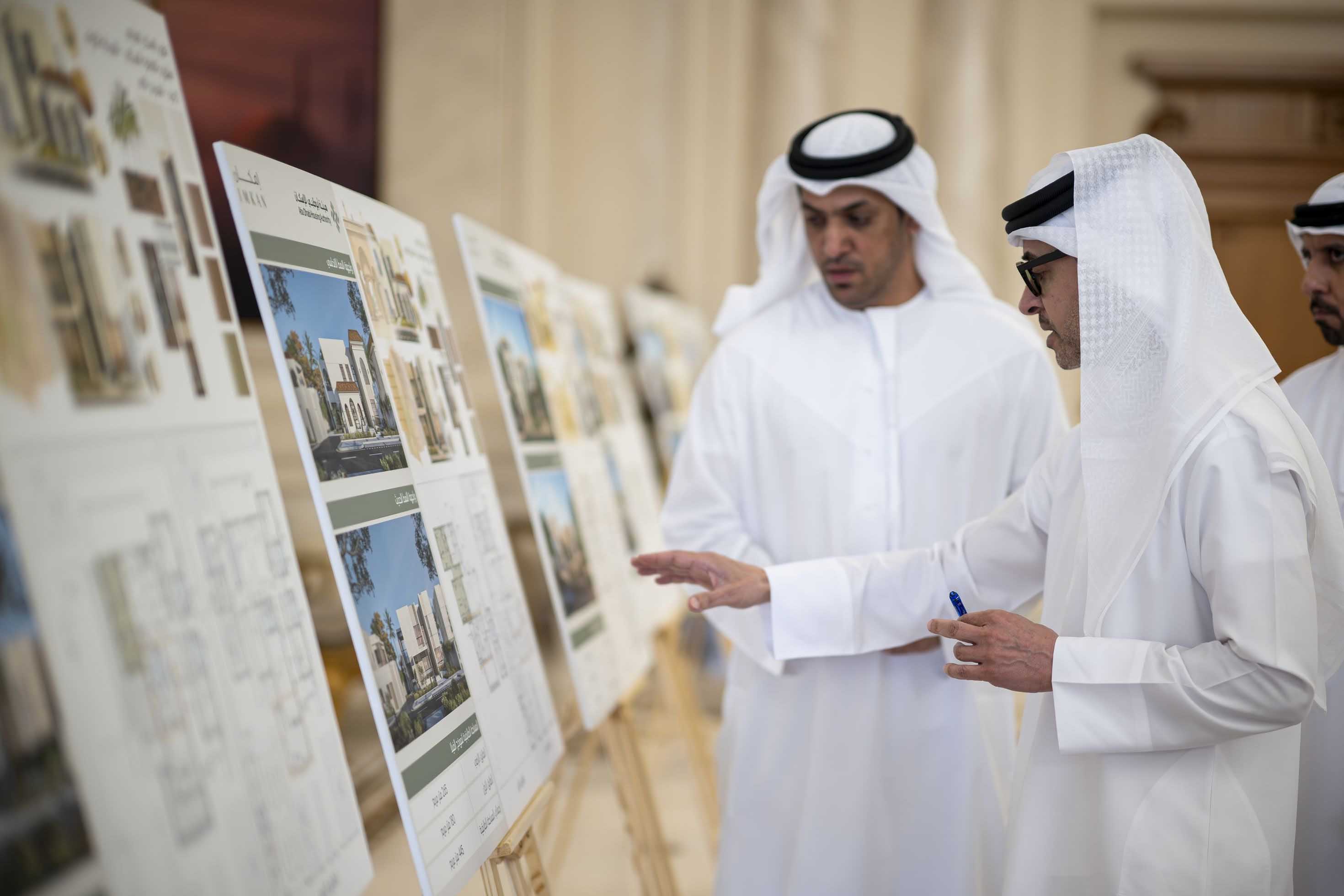 His Highness was briefed on the latest progress of housing projects in Al Ain, aimed at creating integrated residential communities. The developments include five housing projects that will provide 10,316 villas for citizens, designed to the highest standards of sustainability and quality.
