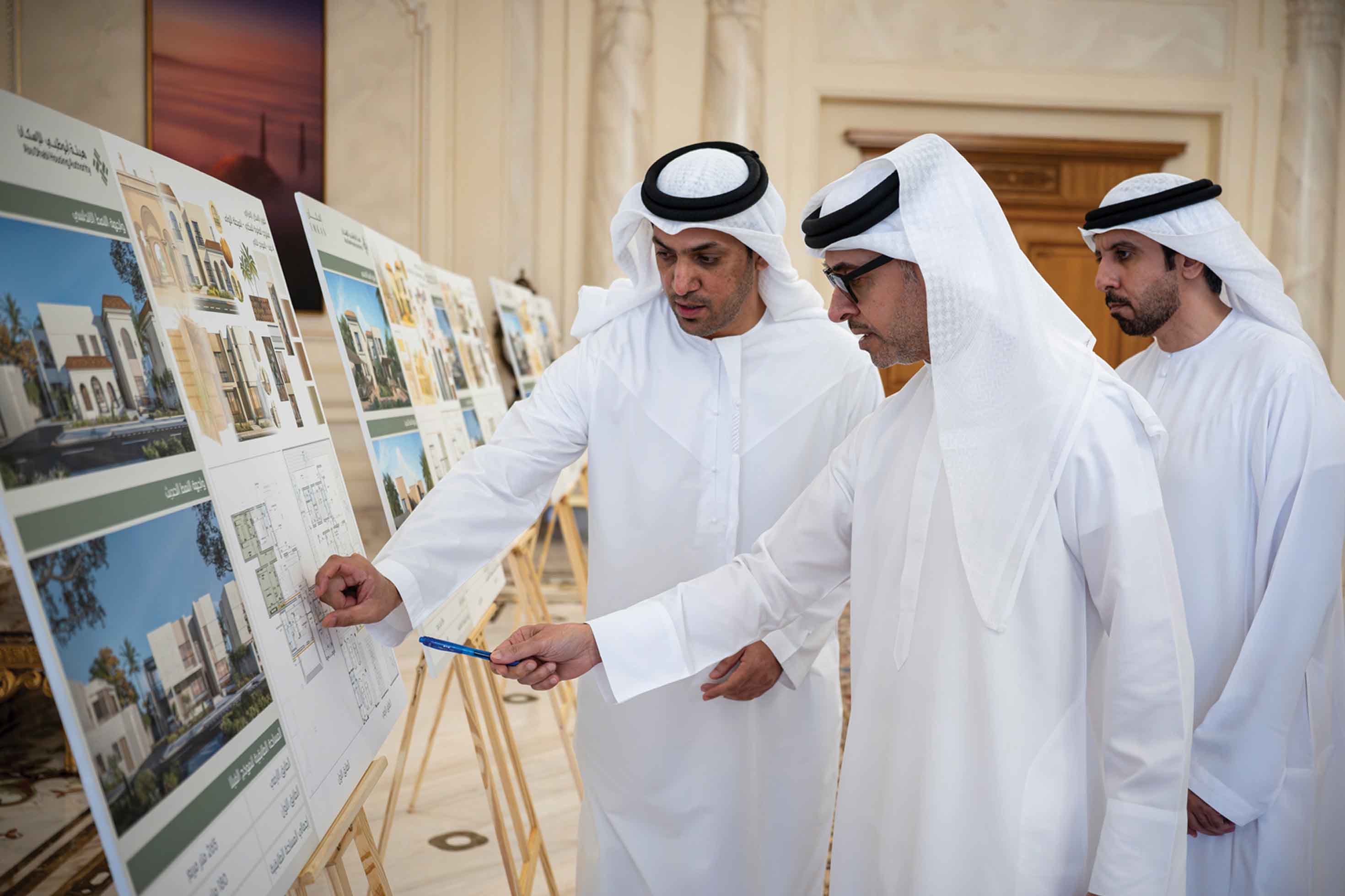 The meeting was attended by His Excellency Sheikh Mohammed bin Hamdan bin Zayed Al Nahyan; His Excellency Hamad Hareb Al Muhairi, Director-General of Abu Dhabi Housing Authority; His Excellency Engineer Maysarah Mahmoud Eid, Director-General of Abu Dhabi Projects and Infrastructure Centre; Engineer Afra Khalfan Al Hajeri, Executive Director of the Planning and Projects Sector at Abu Dhabi Housing Authority; and Engineer Mahra Al Qasimi, Director of the Planning Department at Abu Dhabi Housing Authority.