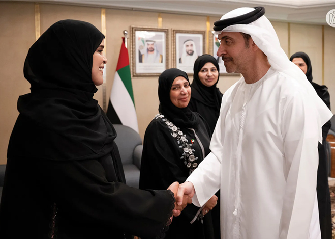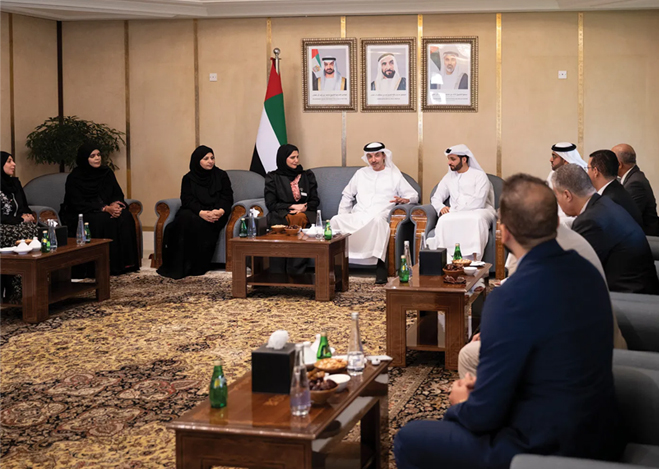 استقبل سمو الشيخ هزاع بن زايد آل نهيان، ممثل الحاكم في منطقة العين، اليوم، الفائزين والفائزات من منطقة العين بجائزة خليفة التربوية في دورتها لعام 2025، وذلك بحضور الشيخ محمد بن حمدان بن زايد آل نهيان، وحميد الهوتي، الأمين العام لجائزة خليفة التربوية.