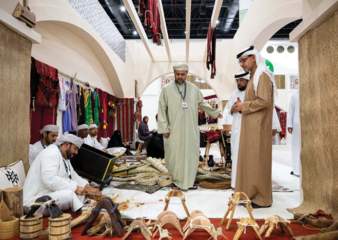 شهد سمو الشيخ هزاع بن زايد آل نهيان، ممثل الحاكم في منطقة العين، جانباً من فعاليات النسخة الأولى من "مهرجان العين التراثي"، الذي تنظِّمه هيئة أبوظبي للتراث، حتى 9 فبراير الجاري في مركز أدنيك العين، تحت شعار "حكايات من تراثنا".