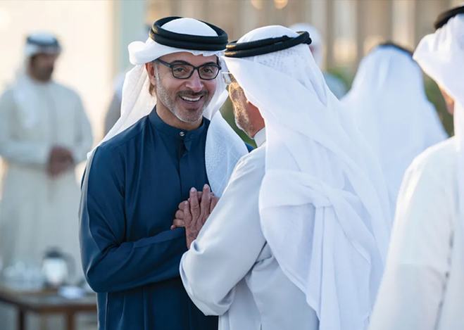 استقبل سموّ الشيخ هزاع بن زايد آل نهيان، ممثّل الحاكم في منطقة العين، اليوم في قصر المقام، كبار المسؤولين والموظفين من مختلف الدوائر الحكومية وقادة الكليات العسكرية وممثلين عن الجمعيات الخيرية وجمعيات النفع العام في منطقة العين، وذلك بمناسبة شهر رمضان المبارك.