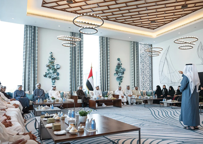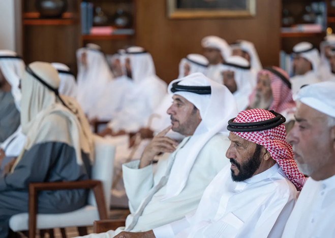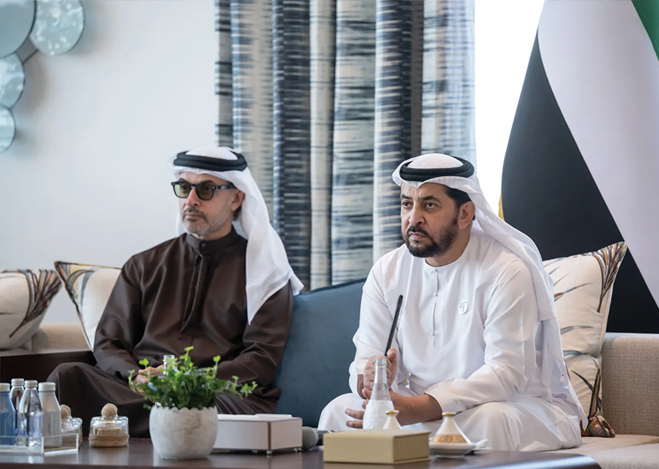 استقبل سموّ الشيخ حمدان بن زايد آل نهيان، ممثّل الحاكم في منطقة الظفرة، سموّ الشيخ هزاع بن زايد آل نهيان، ممثّل الحاكم في منطقة العين، وذلك في برزة قصر الظنة في منطقة الظفرة حيث بحثا عدداً من القضايا والموضوعات التي تهم شؤون الوطن والمواطن. وتبادل سموّ الشيخ حمدان بن زايد آل نهيان وسموّ الشيخ هزاع بن زايد آل نهيان الأحاديث الودية مع الحضور، في أجواء عكست عمق الروابط الأخوية والتلاحم المجتمعي، مؤكِّدين أهمية اللقاءات المباشرة في تعزيز التواصل مع أبناء الوطن، وترسيخ القيم الإماراتية الأصيلة القائمة على التقارب والتآخي والتشاور.