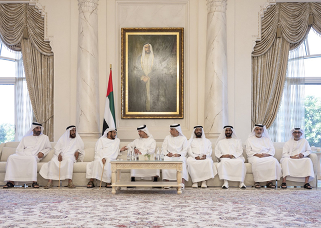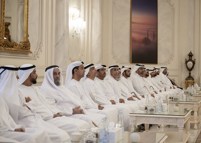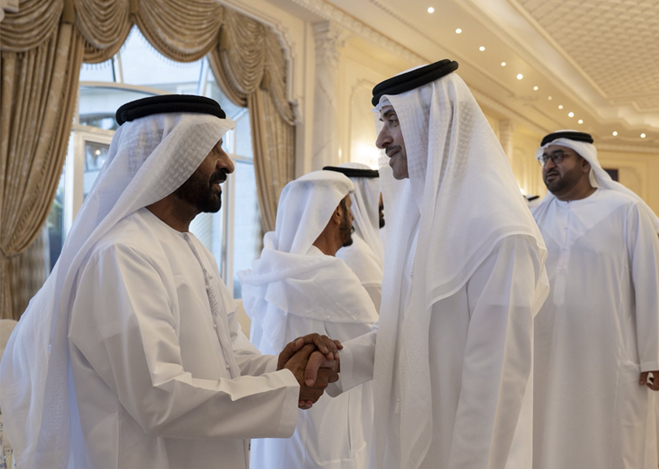 His Highness Sheikh Hazza bin Zayed Al Nahyan, Ruler's Representative in Al Ain, received well-wishers on the occasion of Eid Al Adha at Al Maqam Palace in Al Ain.