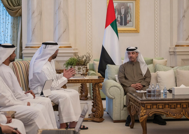 His Highness Sheikh Hazza bin Zayed Al Nahyan, Ruler’s Representative in Al Ain Region, has reviewed the region’s key strategic energy and water projects during a meeting today with a delegation from the Department of Energy – Abu Dhabi (DoE), led by His Excellency Dr Abdulla Humaid Al Jarwan, DoE Chairman.