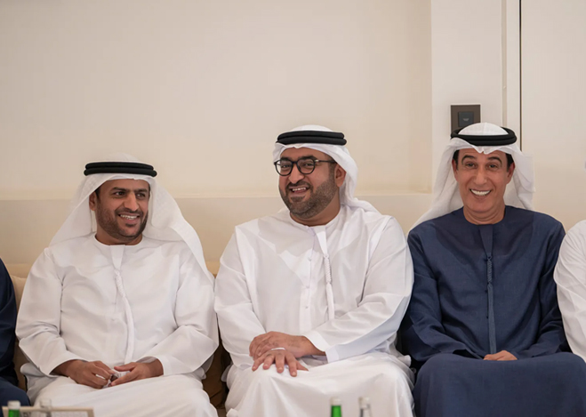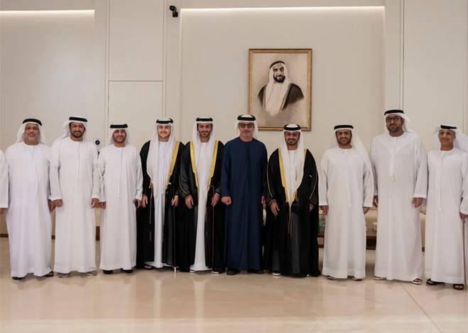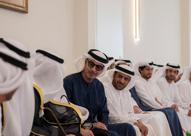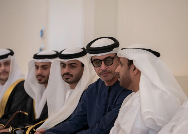 His Highness Sheikh Hazza bin Zayed Al Nahyan, Ruler’s Representative in Al Ain Region, has attended a wedding reception hosted by Dr Hamad Saleh bin Jriban Al Seiari and Professor Saif Saleh bin Jriban Al Seiari in celebration of the marriages of Khalifa Hamad Al Seiari to the daughter of Abdulaziz Oun Al Katheeri, Rashid Saif Al Seiari to the daughter of Dr Hamad Saleh bin Jriban Al Seiari, and Hazza Saif Al Seiari to the daughter of Fahd Saleh bin Jriban Al Seiari.