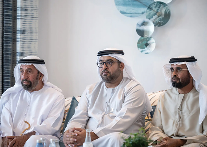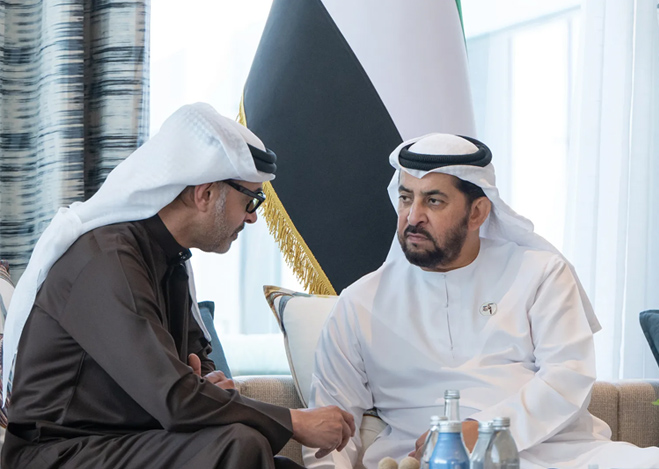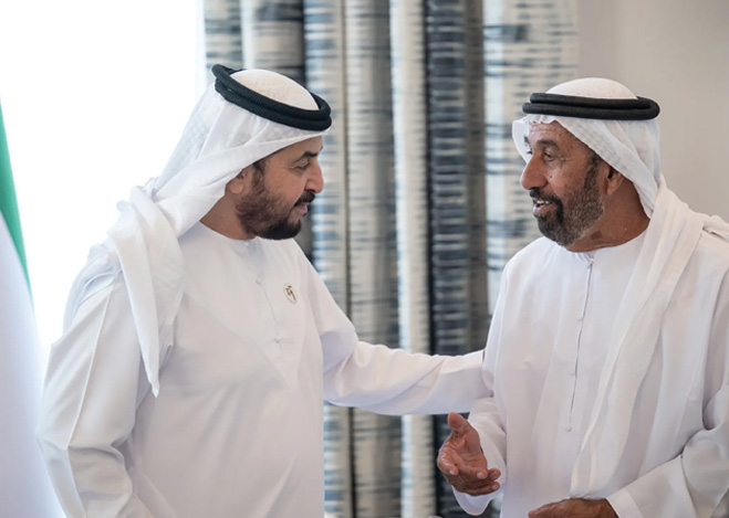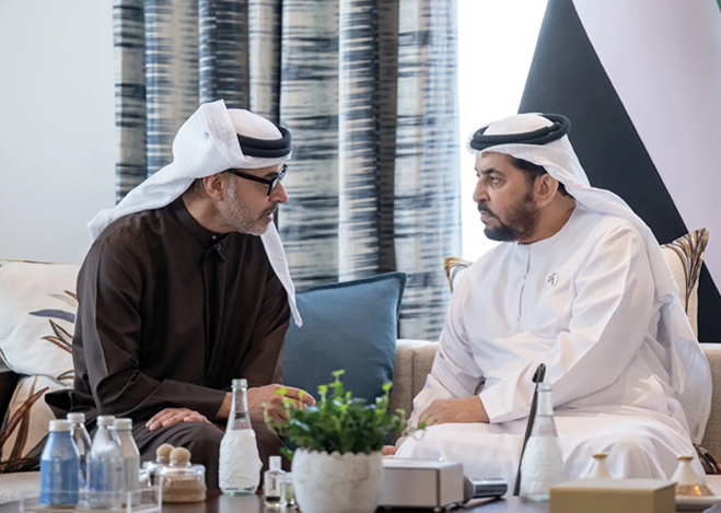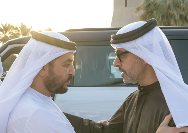 His Highness Sheikh Hamdan bin Zayed Al Nahyan, Ruler’s Representative in Al Dhafra Region, has received His Highness Sheikh Hazza bin Zayed Al Nahyan, Ruler’s Representative in Al Ain Region, in Barzat Al Dhanna Palace, Al Dhafra Region. Their Highnesses discussed the UAE’s ongoing sustainable development, reviewed key milestones in social and service sectors, and explored further initiatives to support stability and quality of life.