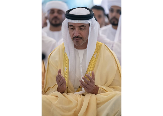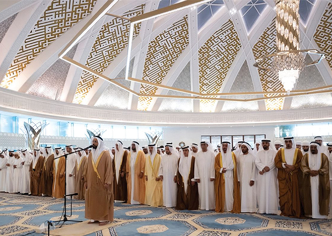 H.H. Sheikh Hazza bin Zayed Al Nahyan, Ruler's Representative in Al Ain Region, performed Eid Al-Fitr prayer this morning at the Sheikh Khalifa Grand Mosque in Al Ain Region.