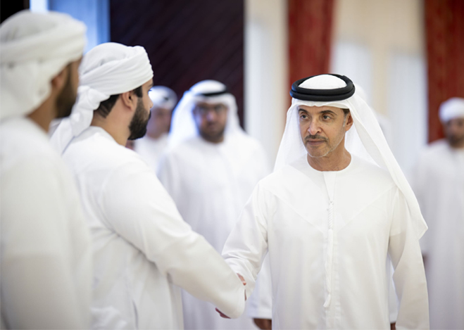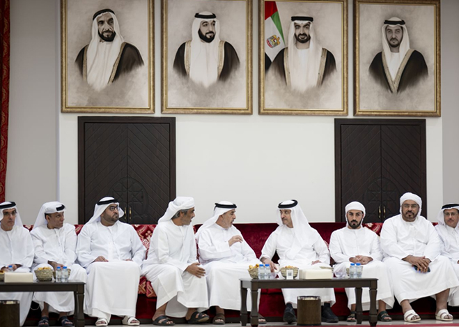 سمو الشيخ هزاع بن زايد يُقدّم واجب العزاء وفاة علي بخيت المزروعي خلال زيارة لمجلس العزاء بمدينة زايد في الظفرة، عن صادق تعازيه ومواساته لأسرة الفقيد، بحضور الشيخ محمد بن حمدان بن زايد.