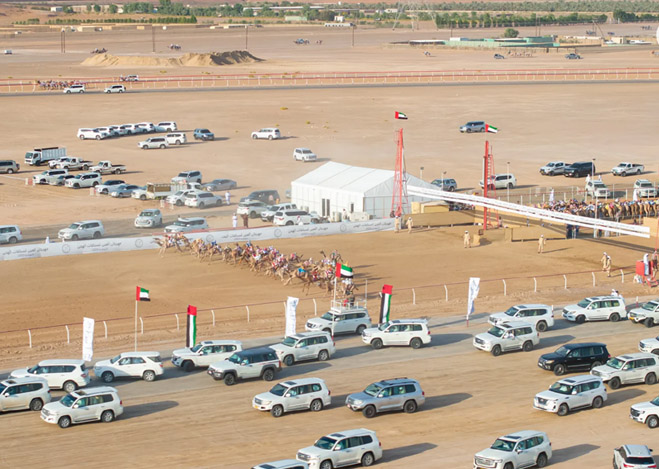 Hazza bin Zayed attends final round of Al Ain Camel Racing Festival 2025
