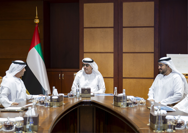 H.H. Sheikh Hazza bin Zayed receives delegation from Abu Dhabi Centre for Technical and Vocational Education and Training and reviews centre’s initiatives to train national talent in Al Ain Region