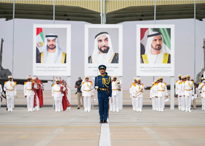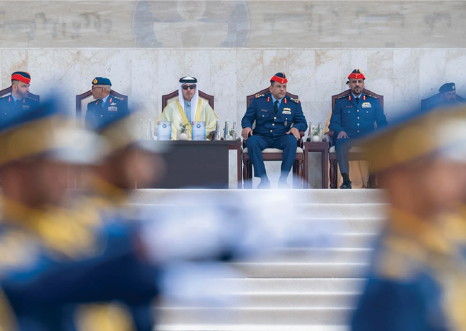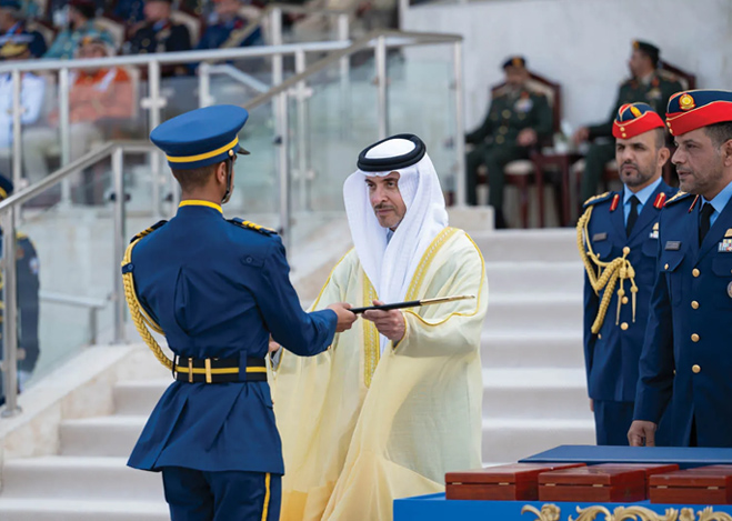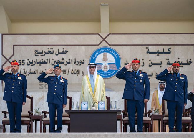 His Highness Sheikh Hazza bin Zayed Al Nahyan, Ruler’s Representative in Al Ain Region, has attended the graduation ceremony of the 55th cohort of cadet pilot officers and the 15th cohort of female cadet pilot officers at Khalifa bin Zayed Air College, as well as course 1 graduates from Zayed Military University.