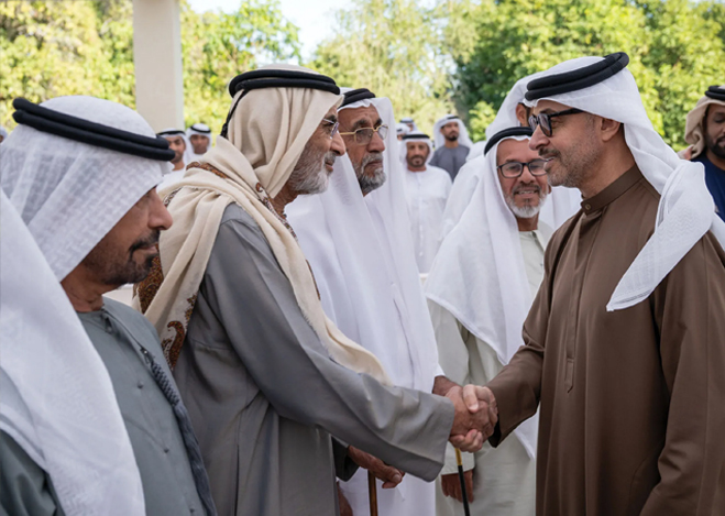 His Highness Sheikh Hazza bin Zayed Al Nahyan, Ruler’s Representative in Al Ain Region, has received several sheikhs, dignitaries, officials and citizens at Al Maqam Palace in Al Ain Region.