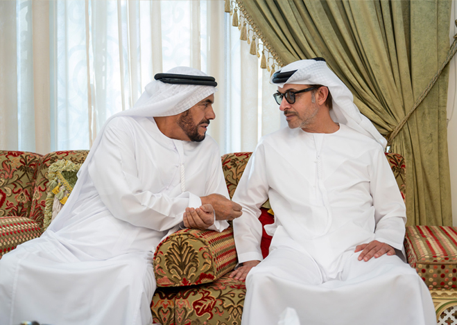 His Highness Sheikh Hazza bin Zayed Al Nahyan, Ruler’s Representative in Al Ain Region, has visited Retired Lieutenant General Obaid Mohammed Al Kaabi at his home in Al Masoudi area of Al Ain Region. Al Kaabi and his family warmly welcomed His Highness Sheikh Hazza bin Zayed Al Nahyan, expressing their gratitude for the visit, which reflects the leadership’s enduring commitment to engaging with Emirati citizens and ensuring their well-being.