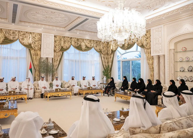 His Highness Sheikh Hazza bin Zayed Al Nahyan, Ruler’s Representative in Al Ain Region, has received outstanding high school students for the 2024-2025 academic year from Al Ain Region.