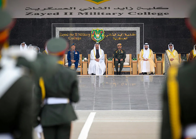 His Highness Sheikh Mohamed bin Zayed Al Nahyan, President of the UAE, has attended the graduation ceremony of the 50th cohort and first university-level cohort of cadet officers at Zayed II Military College in Al Ain Region.