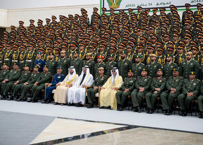 UAE President attends graduation ceremony of 50th cohort and first university-level cohort of cadet officers at Zayed II Military College in Al Ain Region