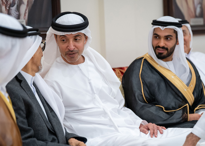 H.H. Sheikh Hazza bin Zayed Al Nahyan, Ruler’s Representative in Al Ain Region, has attended a wedding reception hosted by Hazza Ahmad Mohamed bin Mayed Al Mheiri at Majlis Al Bateen in Abu Dhabi, for the marriage of his son Ahmad, to the daughter of Abdullah Mahfouz Ahmad Al Nuaimi.