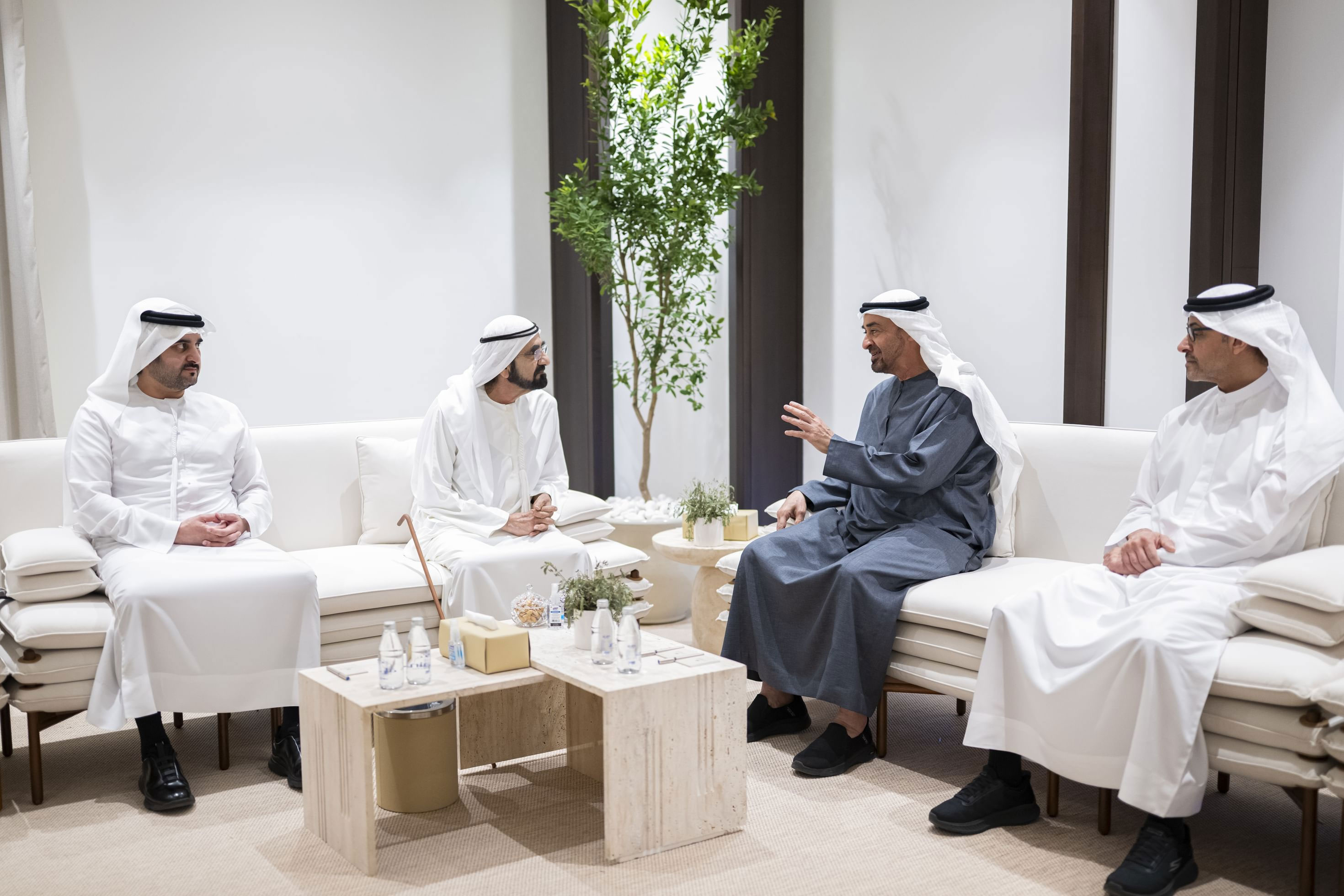 The meeting was attended by H.H. Sheikh Khaled bin Mohamed bin Zayed Al Nahyan, Crown Prince of Abu Dhabi; H.H. Sheikh Maktoum bin Mohammed bin Rashid Al Maktoum, First Deputy Ruler of Dubai, Deputy Prime Minister, Minister of Finance; H.H. Sheikh Ahmed bin Mohammed bin Rashid Al Maktoum, Second Deputy Ruler of Dubai; H.H. Sheikh Hazza bin Zayed Al Nahyan, Ruler's Representative in Al Ain Region; H.H. Lt. General Sheikh Saif bin Zayed Al Nahyan, Deputy Prime Minister and Minister of the Interior; H.H. Sheikh Hamed bin Zayed Al Nahyan; H.H. Sheikh Khalid bin Zayed Al Nahyan, Chairman of the Board of Trustees of Zayed Authority for People of Determination; H.H. Sheikh Theyab bin Mohamed bin Zayed Al Nahyan, Deputy Chairman of the Presidential Court for Development and Fallen Heroes’ Affairs; H.H. Sheikh Hamdan bin Mohamed bin Zayed Al Nahyan, Deputy Chairman of the Presidential Court for Special Affairs; H.H. Sheikh Ahmed bin Saeed Al Maktoum, President of the Dubai Civil Aviation Authority and Chairman and Chief Executive of Emirates Airline and Group; Sheikh Nahyan bin Mubarak Al Nahyan, Minister of Tolerance and Coexistence; Sheikh Mohammed bin Hamad bin Tahnoun Al Nahyan, Adviser to the UAE President; along with a number of Sheikhs and officials.