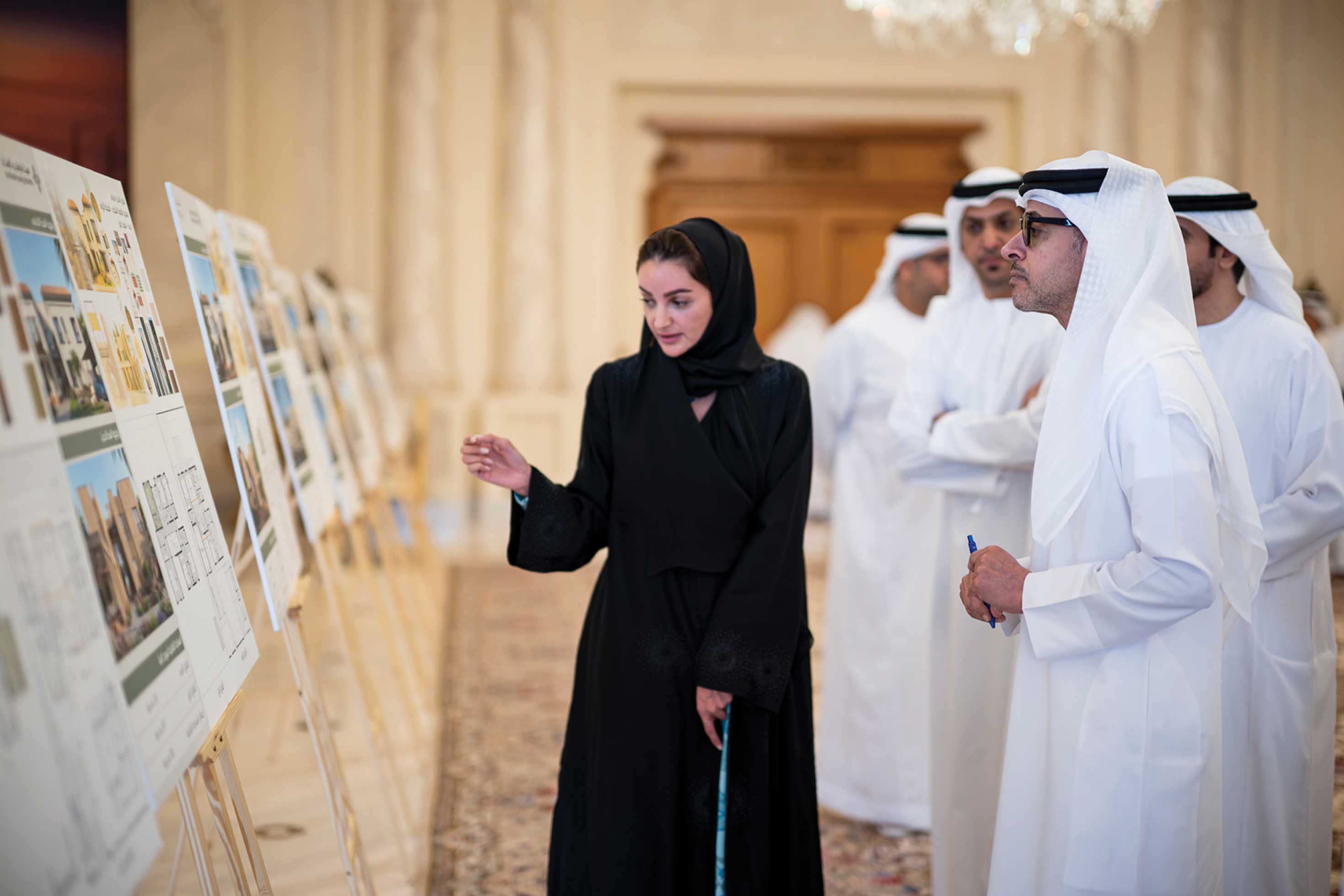 The meeting was attended by His Excellency Sheikh Mohammed bin Hamdan bin Zayed Al Nahyan; His Excellency Hamad Hareb Al Muhairi, Director-General of Abu Dhabi Housing Authority; His Excellency Engineer Maysarah Mahmoud Eid, Director-General of Abu Dhabi Projects and Infrastructure Centre; Engineer Afra Khalfan Al Hajeri, Executive Director of the Planning and Projects Sector at Abu Dhabi Housing Authority; and Engineer Mahra Al Qasimi, Director of the Planning Department at Abu Dhabi Housing Authority.