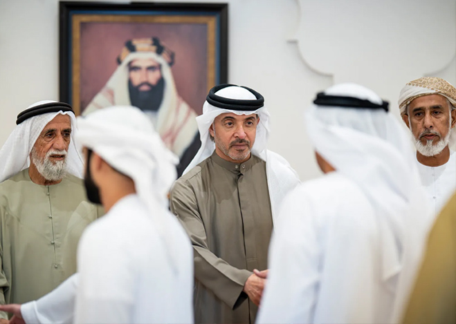 قدّم سمو الشيخ هزاع بن زايد آل نهيان، ممثل الحاكم في منطقة العين، واجب العزاء في وفاة الشيخة مريم محمد سالمين رحمه الشامسي.