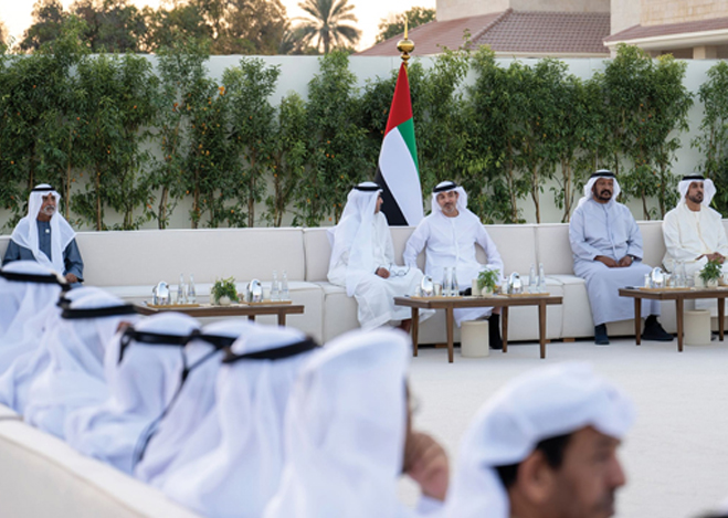 سمو الشيخ هزاع بن زايد يستقبل المهنئين بشهر رمضان المبارك
