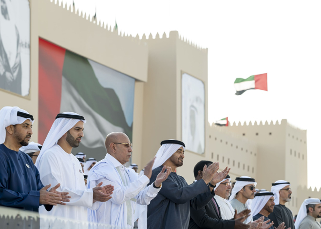 رئيس الدولة والشيوخ وضيوف الإمارات يشهدون "مسيرة الاتحاد" لأبناء القبائل بمناسبة عيد الاتحاد الـ 53