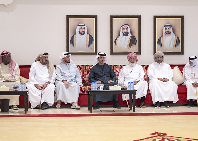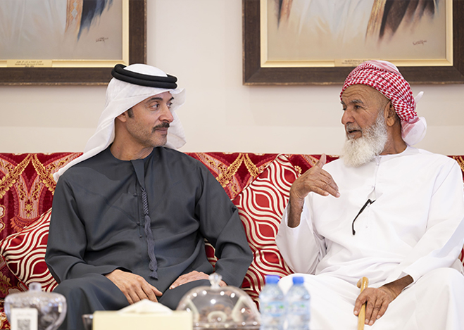 سموّ الشيخ هزاع بن زايد يقدم واجب العزاء في وفاة مبارك محيميد المنصوري