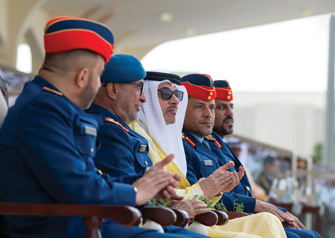 شهد سمو الشيخ هزاع بن زايد آل نهيان، ممثل الحاكم في منطقة العين، حفل تخريج الدورة الـ55 من المرشحين الطيارين ودورة الإناث الـ15 لكلية خليفة بن زايد الجوية ودورة جامعة زايد العسكرية 1، في منطقة العين.