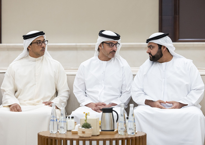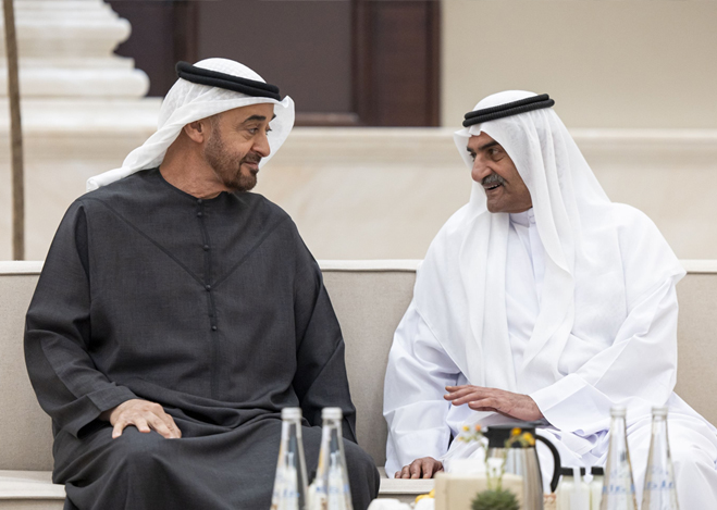 استقبل صاحب السمو الشيخ محمد بن زايد آل نهيان رئيس الدولة “حفظه الله” اليوم أخاه صاحب السمو الشيخ حمد بن محمد الشرقي عضو المجلس الأعلى حاكم الفجيرة يرافقه سمو الشيخ محمد بن حمد بن محمد الشرقي ولي عهد الفجيرة.