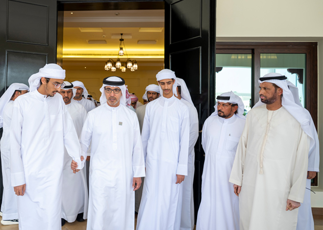 قدّم سمو الشيخ هزاع بن زايد آل نهيان، ممثل الحاكم في منطقة العين، واجب العزاء في وفاة المغفور لهما، بإذن الله، حارب سعيد حمد العميمي وحمد أحمد النخيره المحرمي.