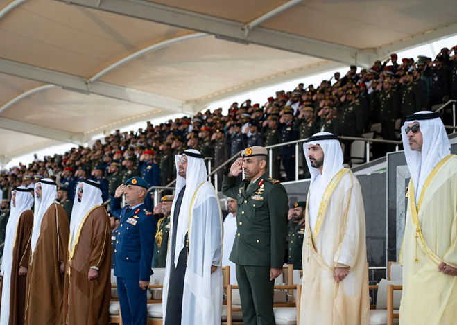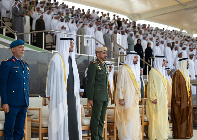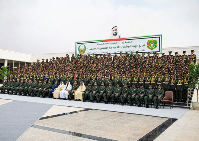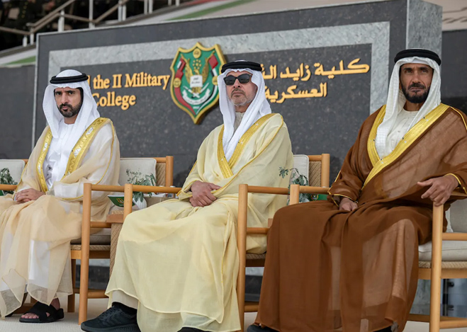 شهد صاحب السمو الشيخ محمد بن زايد آل نهيان، رئيس الدولة "حفظه الله"، اليوم، حفل تخريج الدورة الـ50 للمرشحين والدورة الأولى للمرشحين الجامعيين من كلية زايد الثاني العسكرية في منطقة العين. وهنّأ صاحب السمو الشيخ محمد بن زايد آل نهيان الخريجين، متمنياً لهم التوفيق في مسيرتهم العسكرية المقبلة لخدمة الوطن والدفاع عن مكتسباته وتجسيد القيم الأصيلة لدولة الإمارات في دعم الاستقرار والسلام في المنطقة والعالم، وتعزيز النهج الإنساني للدولة على الساحتين الإقليمية والدولية.