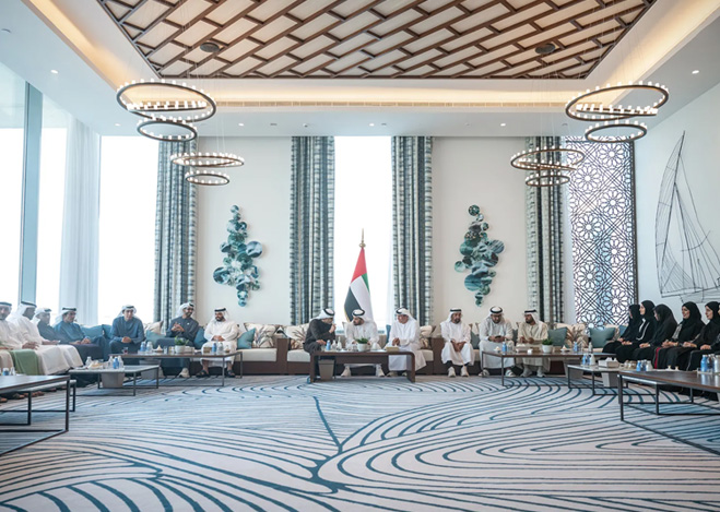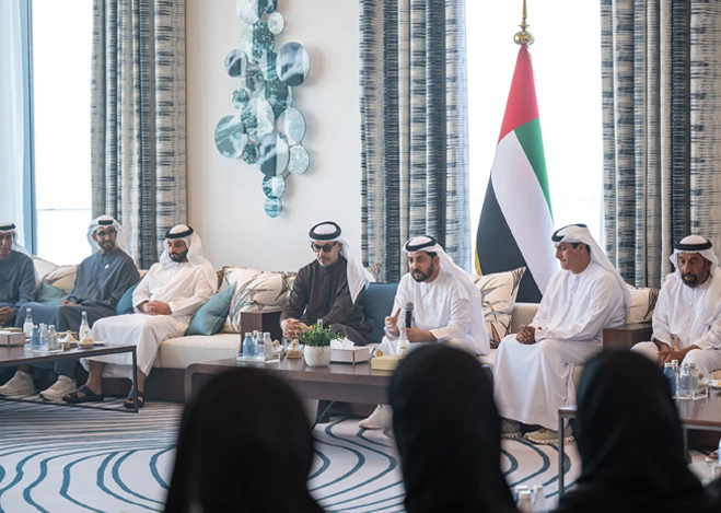 استقبل سموّ الشيخ حمدان بن زايد آل نهيان، ممثّل الحاكم في منطقة الظفرة، سموّ الشيخ هزاع بن زايد آل نهيان، ممثّل الحاكم في منطقة العين، وذلك في برزة قصر الظنة في منطقة الظفرة حيث بحثا عدداً من القضايا والموضوعات التي تهم شؤون الوطن والمواطن. وتبادل سموّ الشيخ حمدان بن زايد آل نهيان وسموّ الشيخ هزاع بن زايد آل نهيان الأحاديث الودية مع الحضور، في أجواء عكست عمق الروابط الأخوية والتلاحم المجتمعي، مؤكِّدين أهمية اللقاءات المباشرة في تعزيز التواصل مع أبناء الوطن، وترسيخ القيم الإماراتية الأصيلة القائمة على التقارب والتآخي والتشاور.
