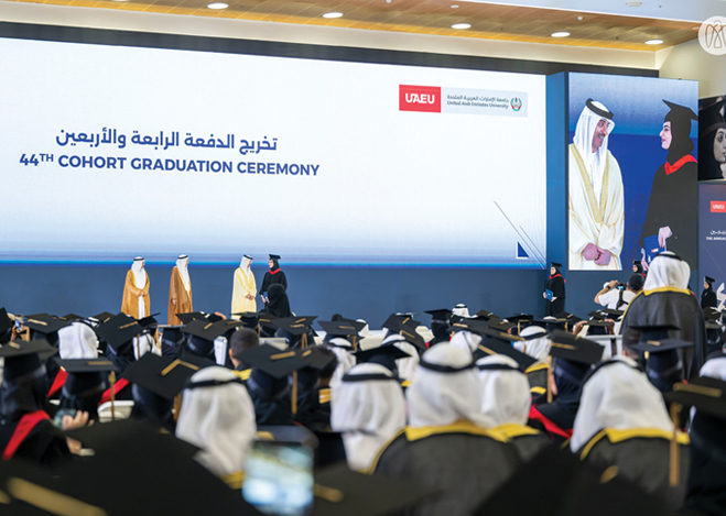 تحت رعاية صاحب السمو الشيخ محمد بن زايد آل نهيان، رئيس الدولة "حفظه الله"، شهد سمو الشيخ هزاع بن زايد آل نهيان، ممثل الحاكم في منطقة العين، حفل تخريج الدفعة الرابعة والأربعين من طلبة جامعة الإمارات العربية المتحدة، الذي أُقيم في الحرم الجامعي في منطقة العين.