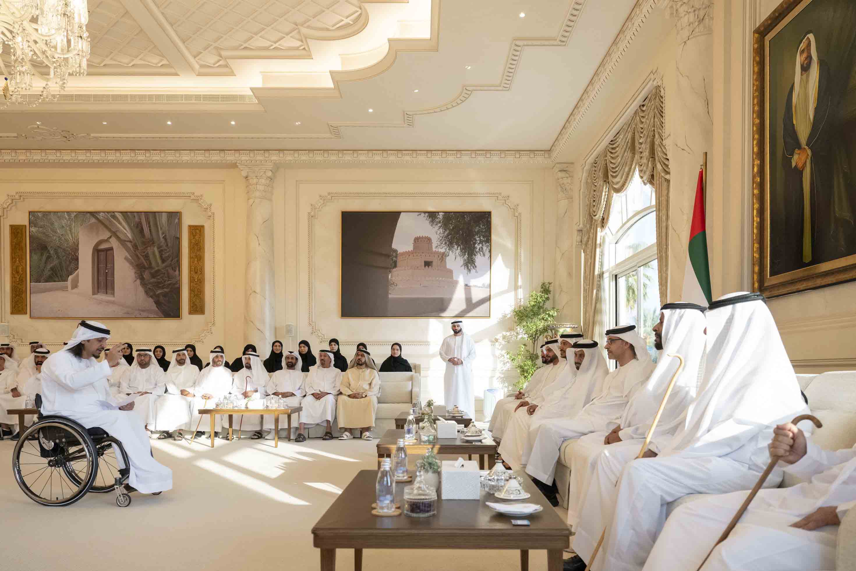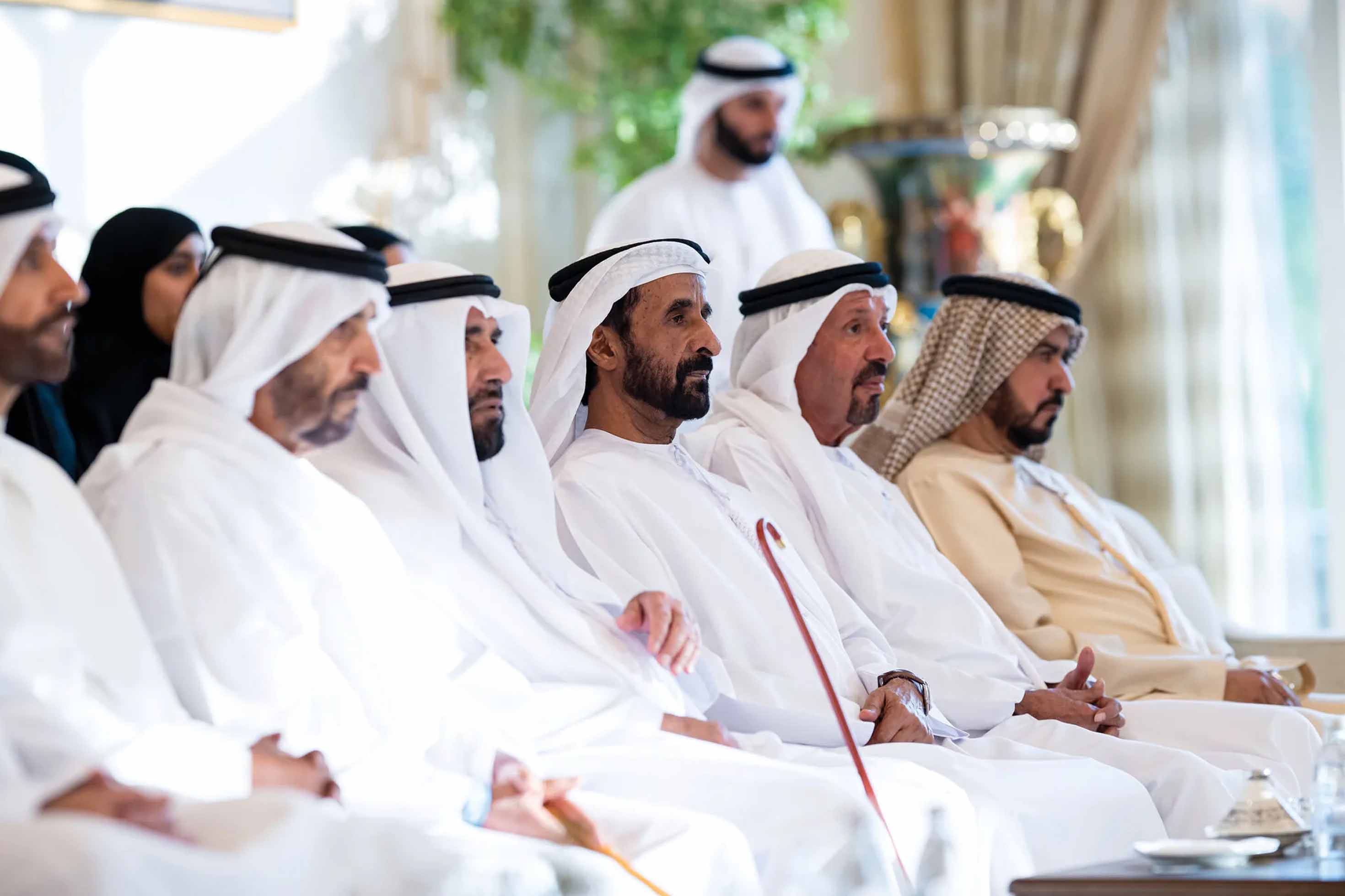 جاء ذلك خلال استقبال سموّه عدداً من الشيوخ والمسؤولين والمواطنين في برزة قصر المقام بمنطقة العين، حيث تبادل سموّه مع الحضور الأحاديث الودية التي تعكس عمق التواصل والترابط بين القيادة الحكيمة والمواطنين، إضافةً إلى بحث عدد من الموضوعات ذات الصلة بشؤون الوطن والمواطن.