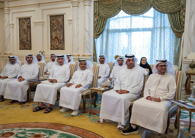 Hazza bin Zayed receives delegation from Department of Municipalities and Transport to review key development projects in Al Ain Region