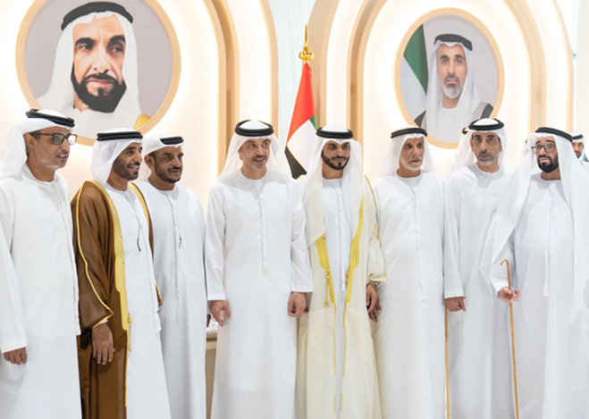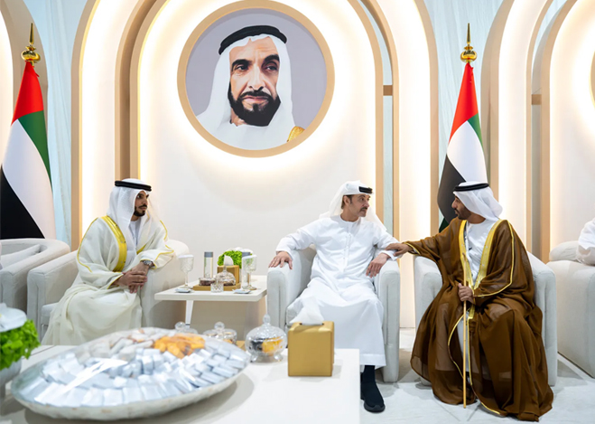 His Highness Sheikh Hazza bin Zayed Al Nahyan, Ruler’s Representative in Al Ain Region, has attended a wedding reception hosted by Saeed Ahmed bin Dari Al Falahi for the marriage of his son Ahmed to the daughter of Hamad Sari Ahmed Al Mazrouei. His Highness congratulated the newlyweds and their families and wished them a happy and prosperous married life.