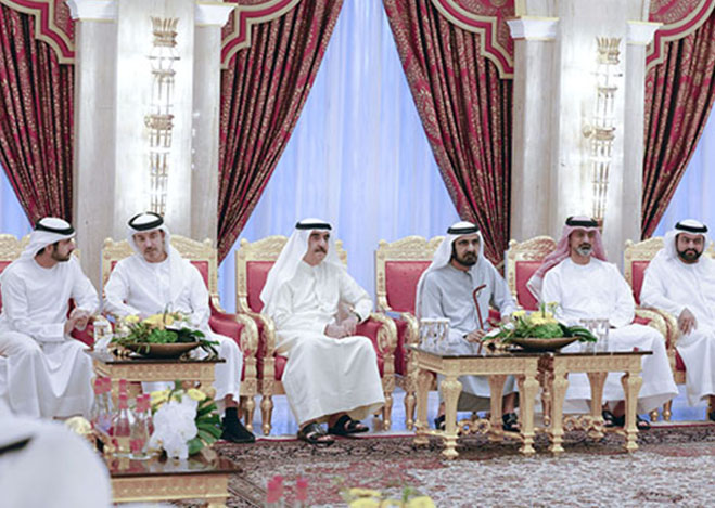Mohammed bin Rashid receives Ruler of Umm Al Qaiwain, exchanging Ramadan greetings