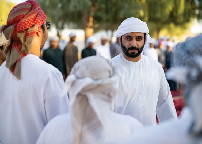His Highness Sheikh Hazza bin Zayed Al Nahyan, Ruler’s Representative in Al Ain Region, has visited Al Fakhr Winter Camp for martyrs’ sons in Remah, organised by the Fallen Heroes’ Affairs Office at the Presidential Court, in Al Ain Region until 12 December 2025, in collaboration with the Emirates Falconers’ Club and Mohamed bin Zayed Falconry and Desert Physiognomy School (FDPS).