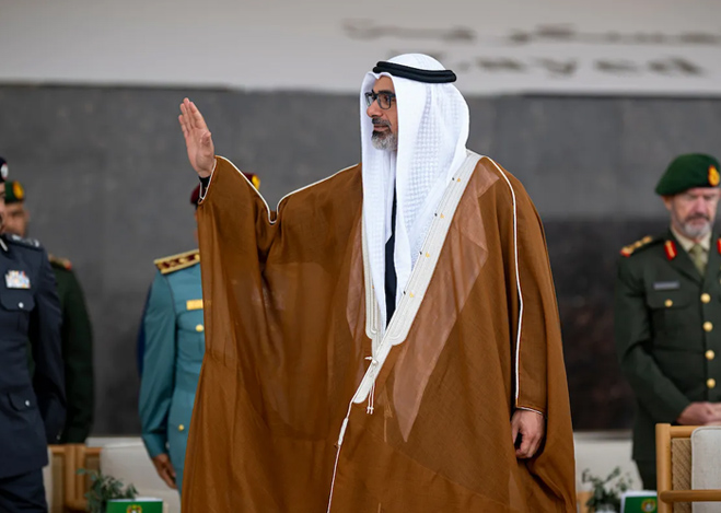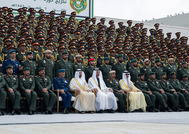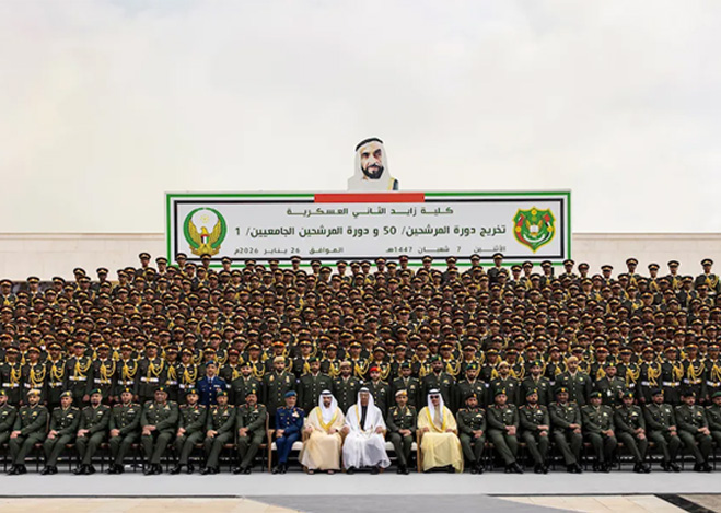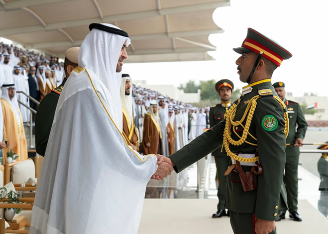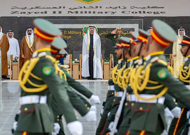 UAE President attends graduation ceremony of 50th cohort and first university-level cohort of cadet officers at Zayed II Military College in Al Ain Region