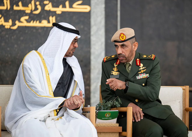 His Highness Sheikh Mohamed bin Zayed Al Nahyan, President of the UAE, has attended the graduation ceremony of the 50th cohort and first university-level cohort of cadet officers at Zayed II Military College in Al Ain Region.