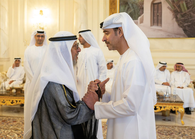 H.H. Sheikh Hazza bin Zayed Al Nahyan, Ruler's Representative in Al Ain Region, performed Eid Al-Fitr prayer this morning at the Sheikh Khalifa Grand Mosque in Al Ain Region.