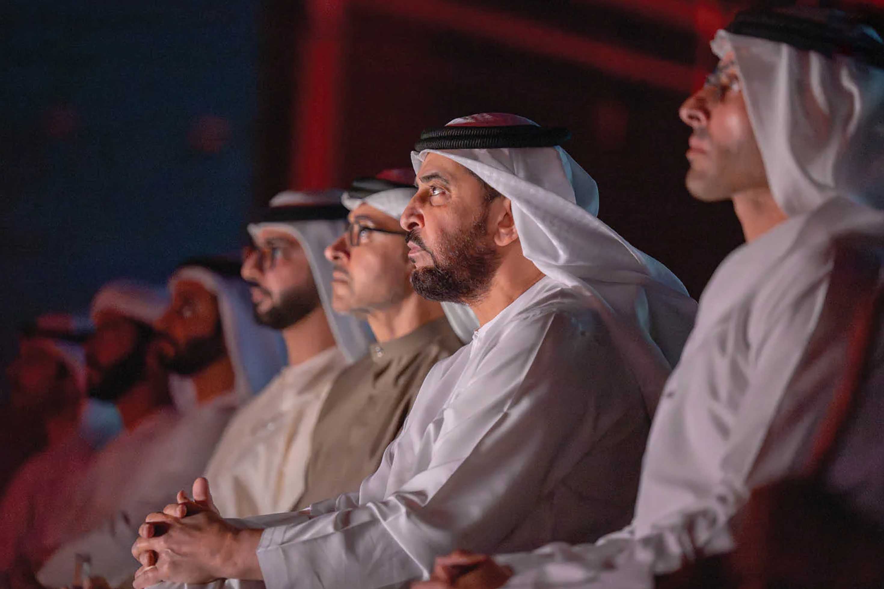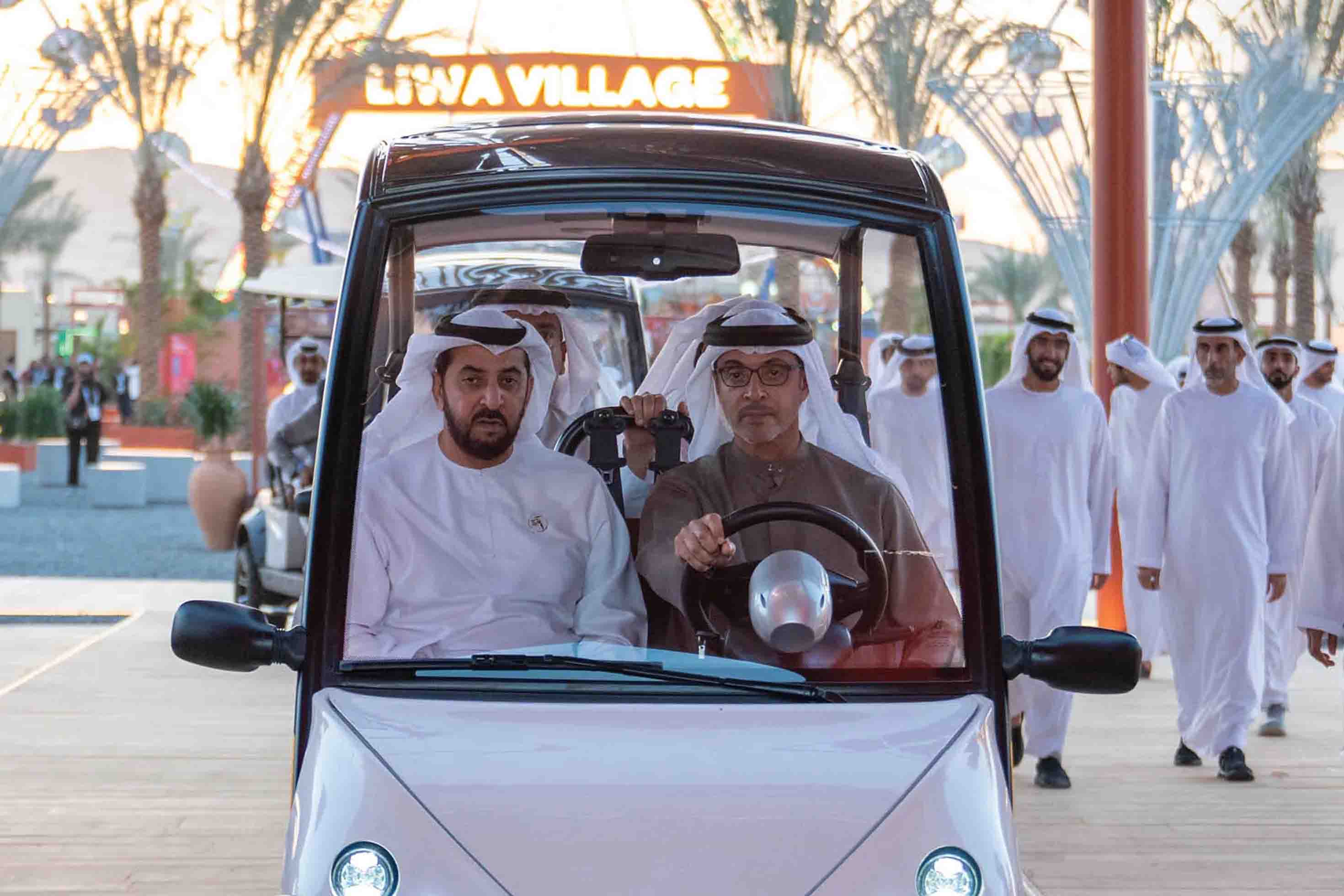 Their Highnesses also witnessed the festival’s opening ceremony, which featured an innovative sound, light, laser, and drone show, culminating in a fireworks display that lit up the skies over the Liwa desert. The opening day featured a special performance by the UAE’s official aerobatic team, Al Fursan.