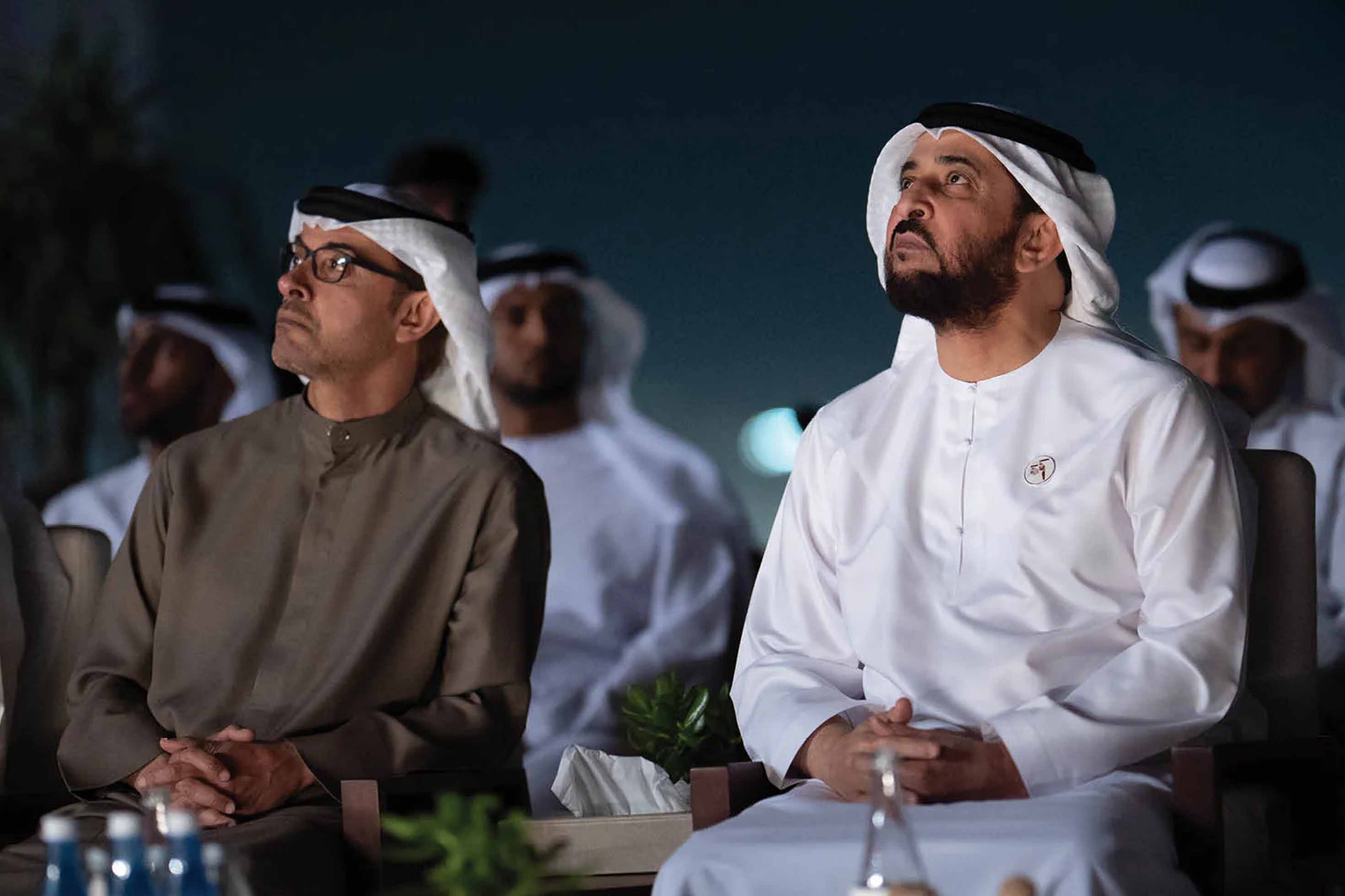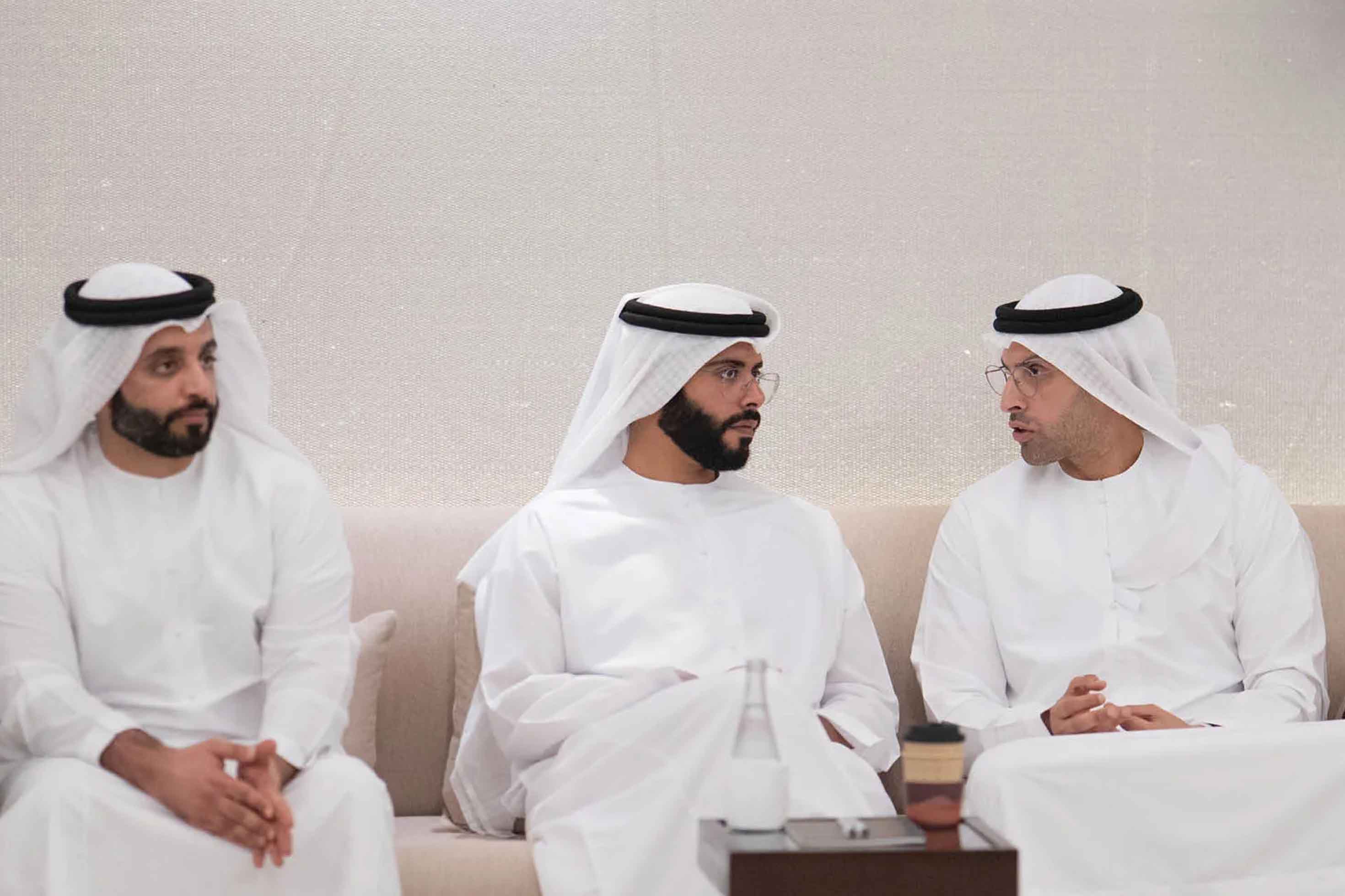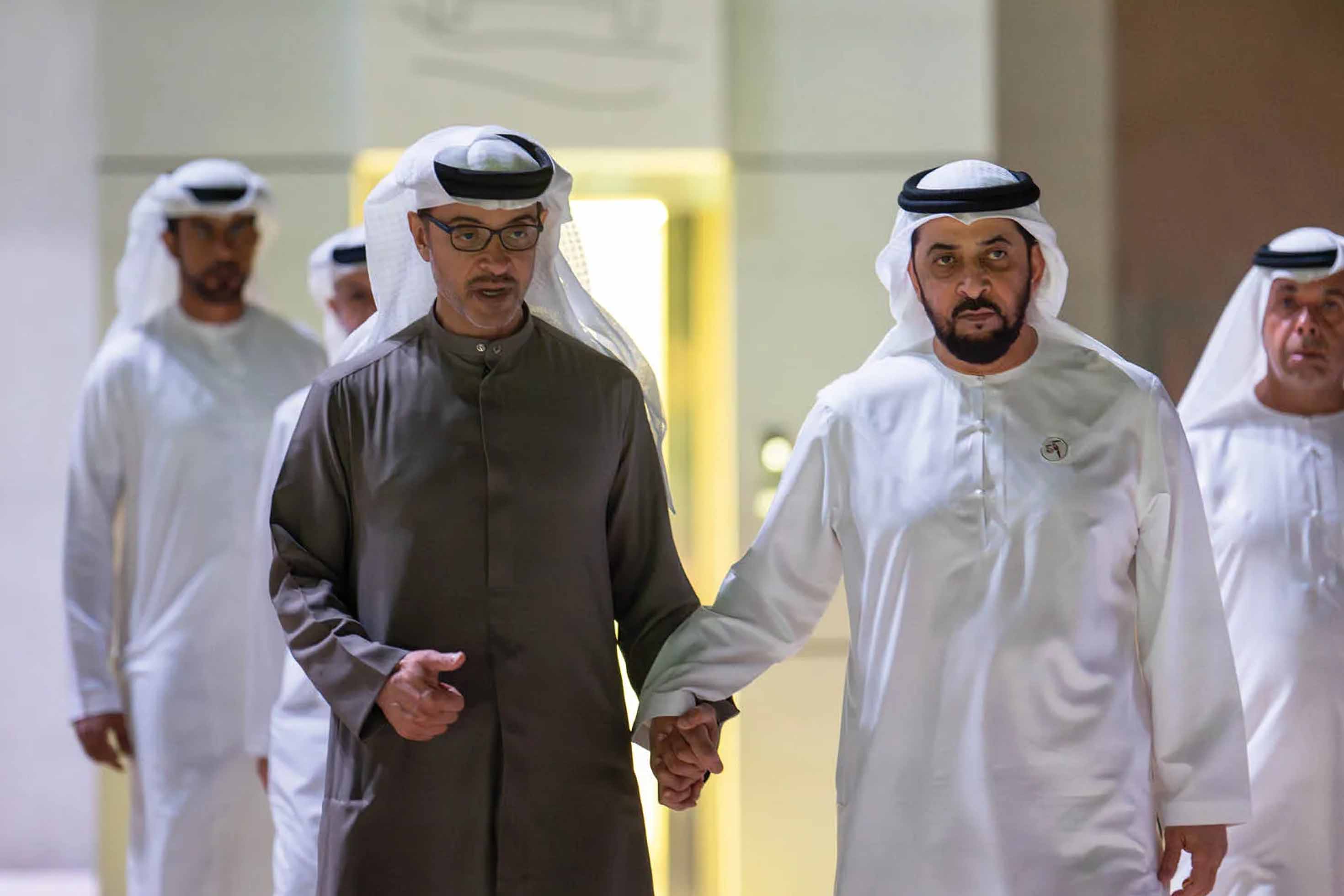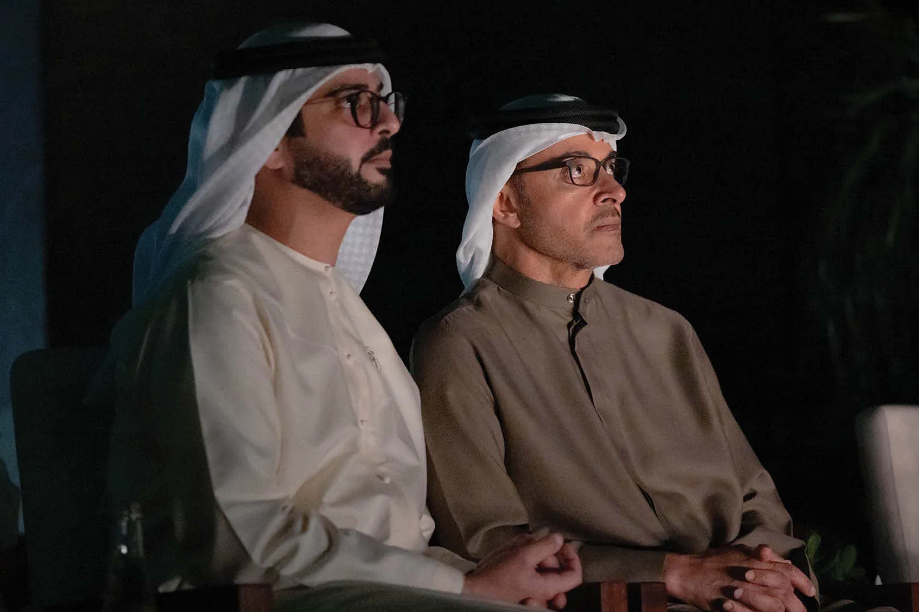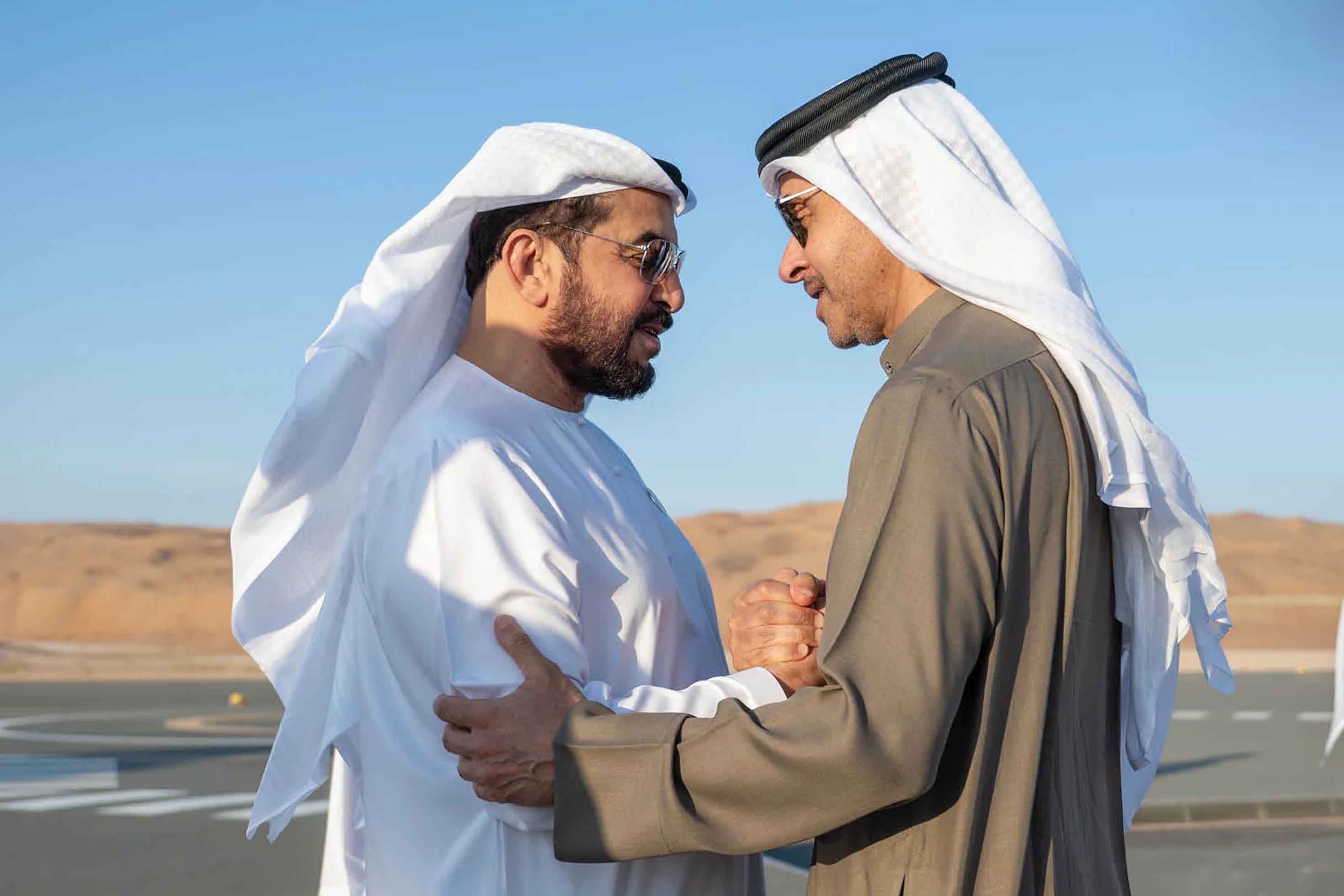 His Highness Sheikh Hamdan bin Zayed Al Nahyan, the Ruler’s Representative in Al Dhafra Region, and His Highness Sheikh Hazza bin Zayed Al Nahyan, Ruler's Representative in Al Ain Region,