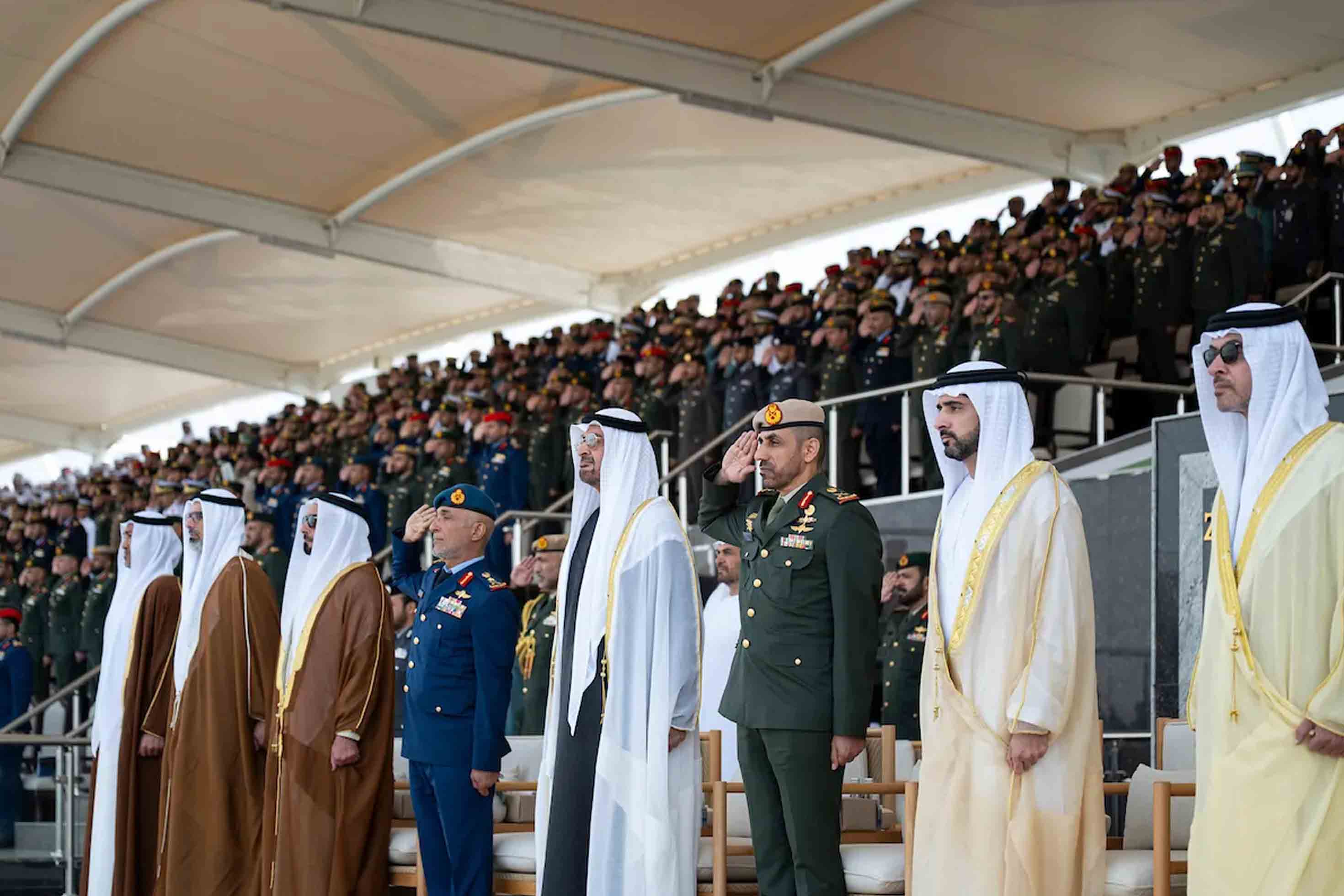 His Highness Sheikh Mohamed bin Zayed Al Nahyan congratulated the graduates and wished them success in their military careers as they serve the UAE, safeguard its achievements and uphold the nation’s deep-rooted values of promoting stability and peace across the region and around the world, emphasising the importance of advancing the UAE’s humanitarian mission at regional and international levels.